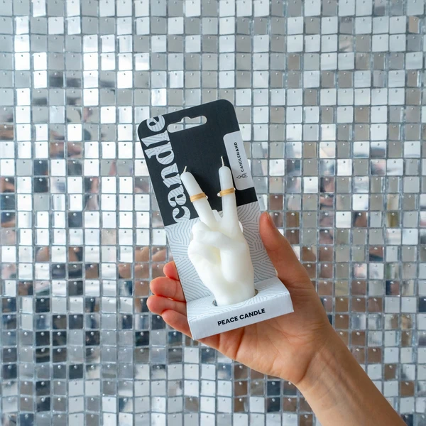 A small hand gesture candle that delivers a big message, Peace. This hyper-realistic handmade candle is a fun and memorable gift.
