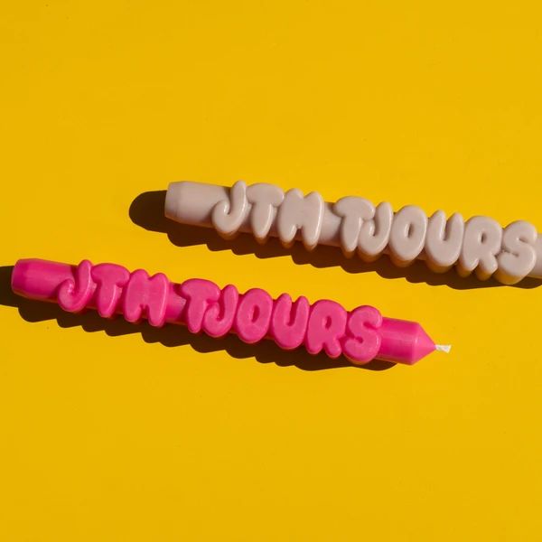 A taper candle with a clear message ‘JTM Tjours’. It’s the French way of saying ‘Love You Always!’ Let the candle do the talking. This candle is made by hand from the shape right to the finish.