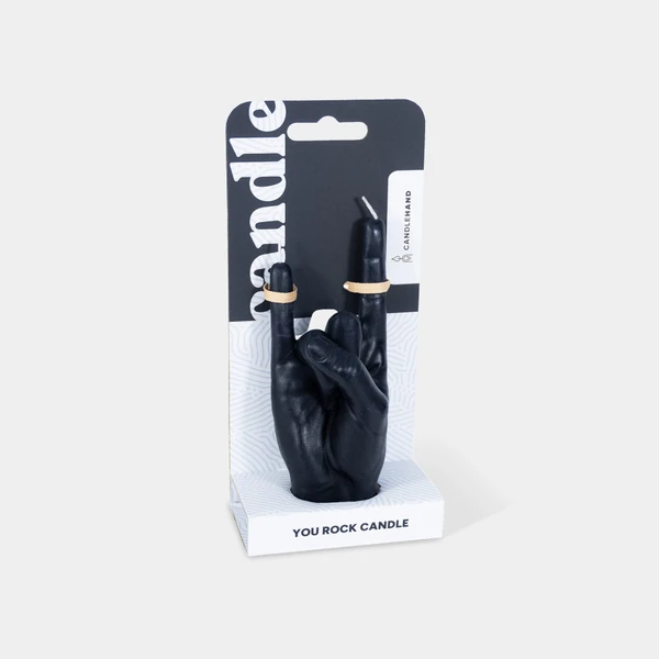 A small hand gesture candle that delivers a big message, You Rock. This hyper-realistic handmade candle is a fun gift with a good sense of humor.